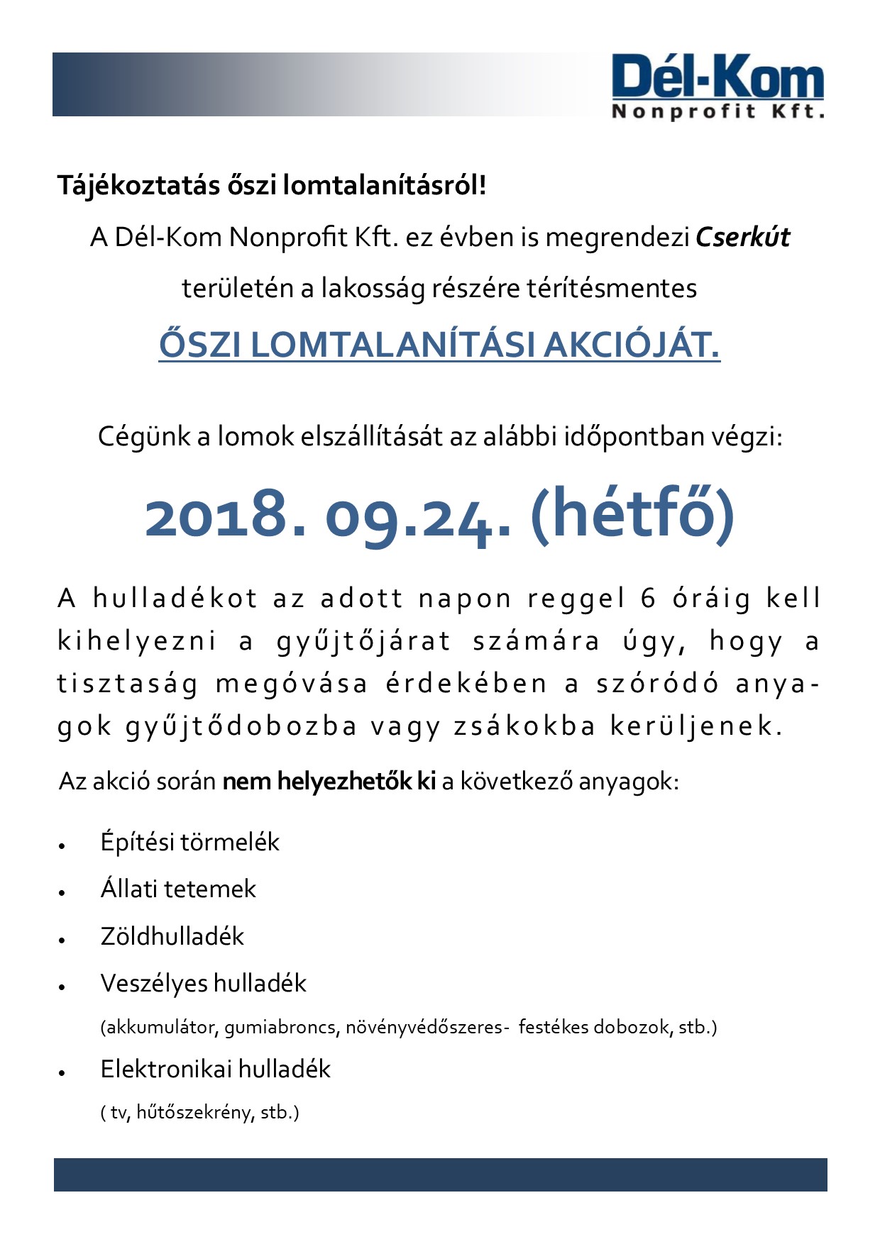 Cserkút Község Önkormányzat Képviselő-testülete az önkormányzati tulajdonú területek, járdák, közutak 2018/2019-es időszak téli hó eltakarítási - és síkosság mentesítési feladatok ellátására pályázatot hirdet az alábbi feltételek szerint!