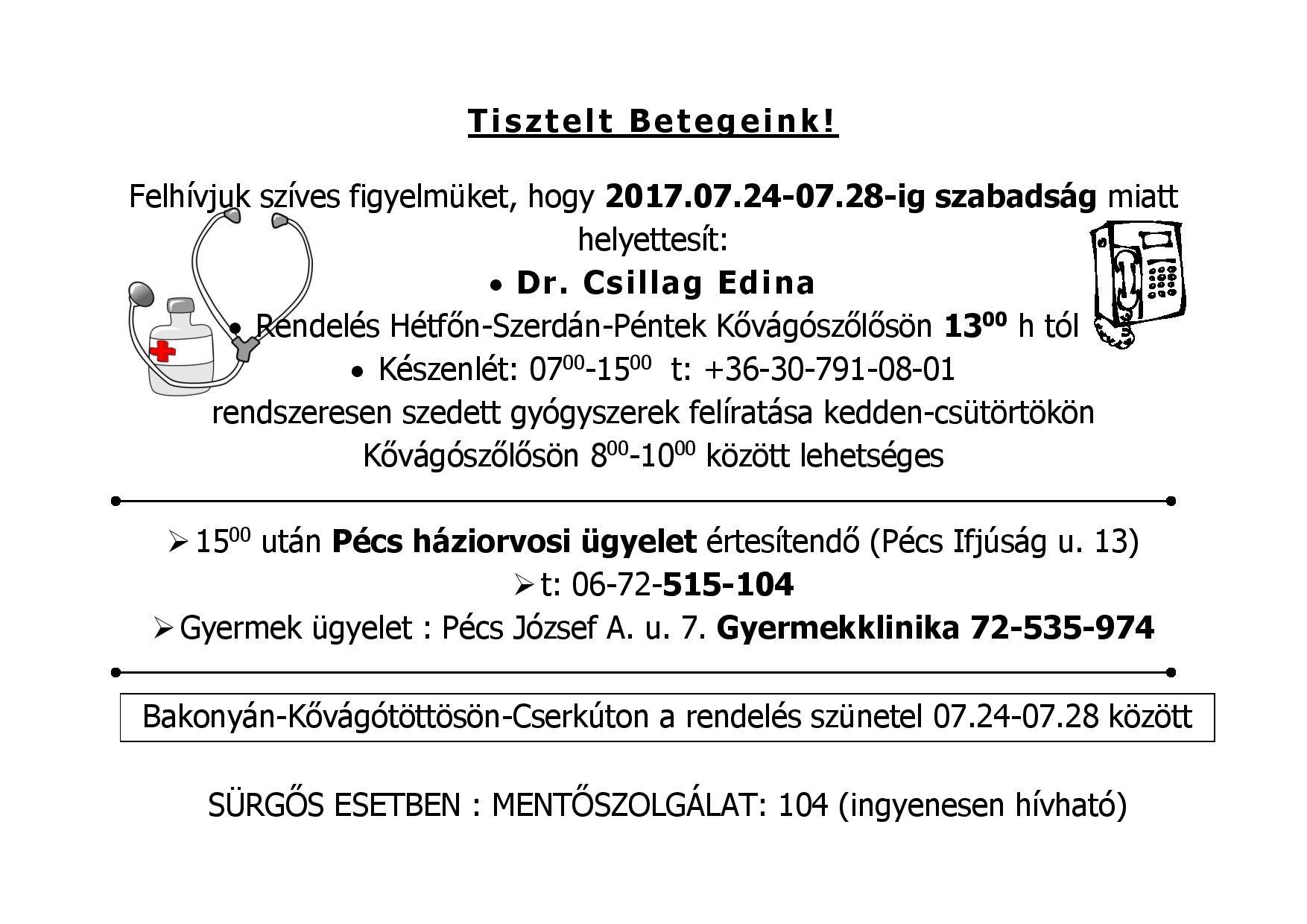 2017. augusztus 7-11. között ügyfélfogadási időben, csak